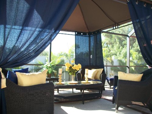 Outdoor Gazebo Patio Drapes Royal Blue "Sheer" (50"x108") (2) Panels Features