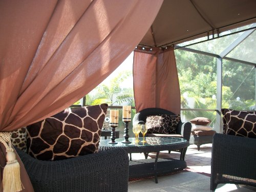 "Hampton Collection"..Special Price..Beautiful New "Solid" Grommet Drapes..(2) Panels Only .93.. GREAT VALUE! Offered Exclusively by "Patio Pizazz".. Transform your backyard into a Tranquil Oasis.... Hang these beautiful drapes anywhere you want to add another space or another room (make it cozy)..They look fantastic on a Pergola, they look Beautiful on a Patio Trellis, they are a perfect fit for any outdoor setting...AND, they are Simply Stunning INDOORS on window coverings..Be Creative! Adding Additional Panels will add Fullness and Privacy for a more Cozy Feel. Reminder, these drapes are not just for the Outdoors... They look beautiful Indoors too.. Combined shipping.... Shipping is only charged for the first three (3) sets of drapes purchased.... Over three (3) sets no additional shipping charges (up to 8 sets). You can purchase Hooks to hang drapes at any of your local department stores.. J.C. Penny's, Sears, Bed Bath and Beyond just to name a few... Tip: To create any one of these beautiful Gazebo looks, you'll need to purchase (8) set's of drapes and a 10' x 10' Gazebo...Outdoor Gazebo Patio Drapes Kenya Brown "Solid" (2) Panels (each panel 42" X 84")
