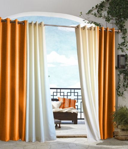 Gazebo solid color grommet top panels are yarn dyed polyester, engineered for indoor and outdoor use. These panels resist fading, are mildew proof, and repel water. Panels are easy care machine washable, and easy to install grommet ring mounting.Outdoor decor Gazebo Indoor Outdoor Window Panels, 50 by 84, Orange